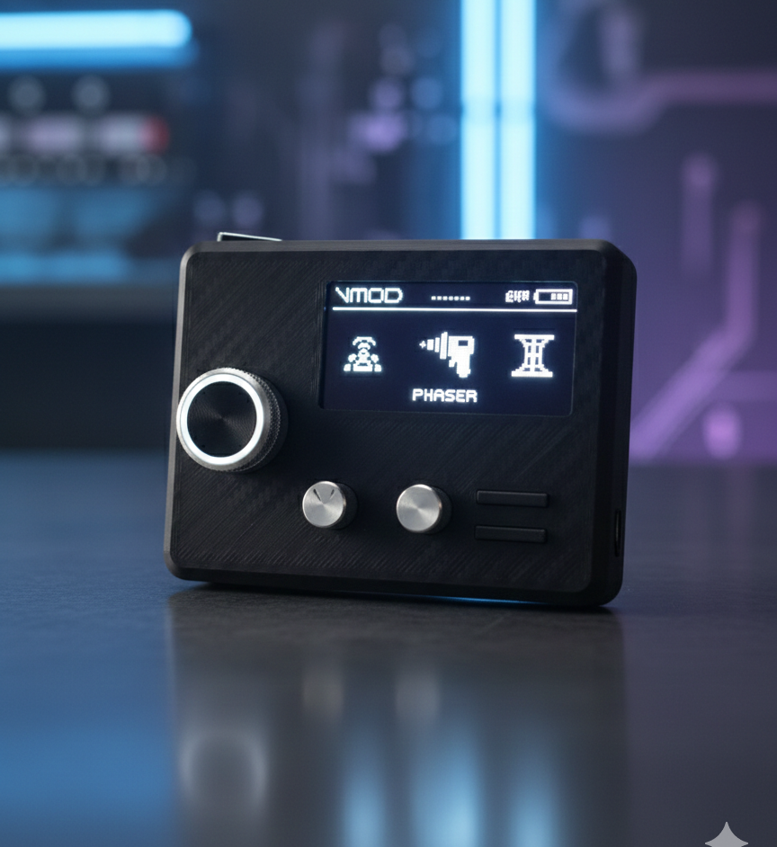 The Vmod Pro is a professional-grade, real-time voice modulation system packed into a portable, user-friendly, battery powered device. Built on the STM32H7 32-bit processor running at 48kHz, it delivers studio-quality voice modulation with zero latency.
